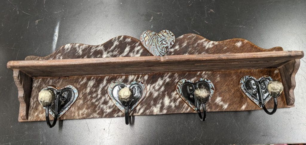 Used this painted leather to make moccasins and a hat for my sister. A little stiff for the moccasins but they’ll break in with some conditioner. The hat worked out real nice.