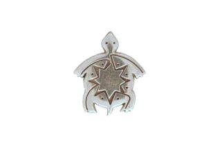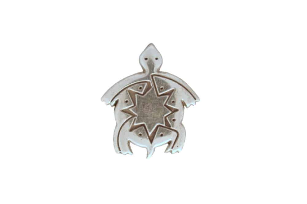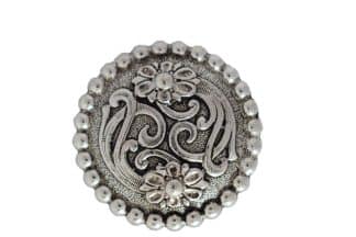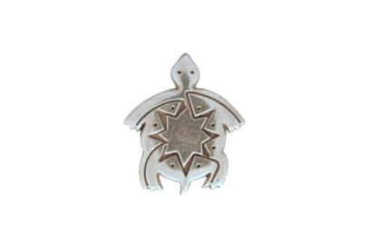 Silver colored concho with a turtle design. 1″ wide at longest. Screw back attachment. Made of nickel