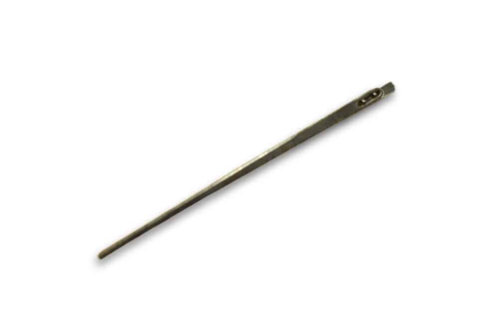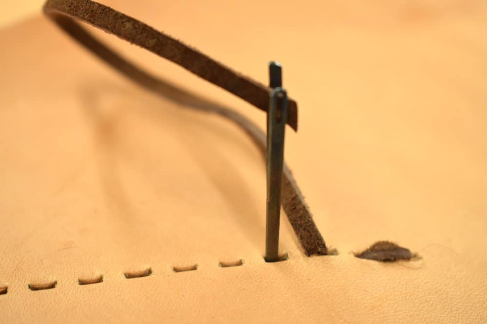 The two prong lacing needle has a couple metal teeth that help secure the lace. Easy to use and affordable, these lacing needles come in packs of ten. Note that the leather should be pre-punched before you lace.