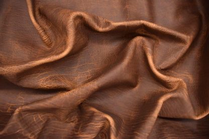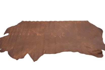 A distressed, bison leather in medium brown, though lighter than the cognac. Maintains a waxy finish with rich, pull up undertones. At 5 to 6 ounces thick (5/64″ – 3/32″) and soft to medium in temper, these sides are perfect for bags, packs, straps, shoes and more. Available in cut pieces.
